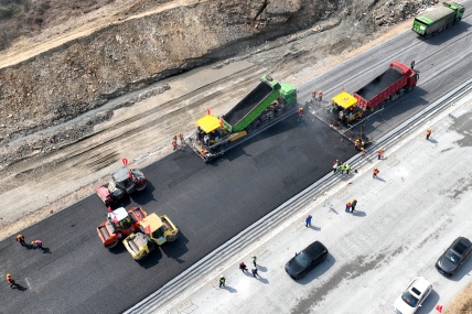 3月10日上午,由安徽省交通建設股份有限公司承建的S22天天高速安慶至潛山段(涼亭至月山)路基路面工程01標瀝青下面層試驗段順利完成攤鋪。
